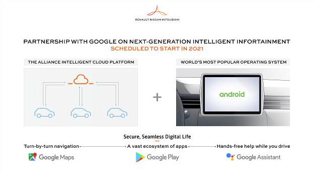 Renault-Nissan-Mitsubishi and Google recently announced a technology partnership to embed the Android operating system in vehicles sold by the world’s leading automotive alliance, providing intelligent infotainment and customer “focused-applications” across multiple models and brands, scheduled to start in 2021.