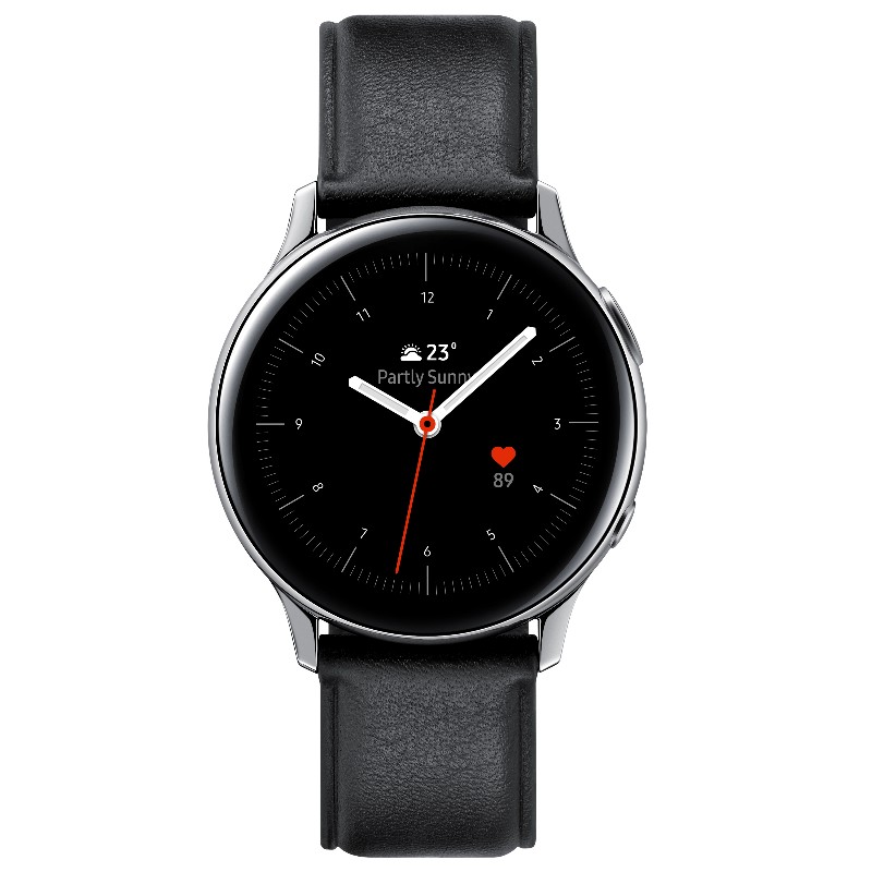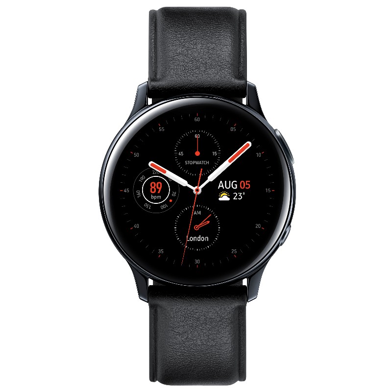 The Galaxy Watch Active2 is masterfully designed to be both beautiful and customizable to your life. The Galaxy Watch Active2 comes in two different sizes—44mm and 40mm in diameter—and two styles: lightweight aluminum with a casual Fluoroelastomer (FKM) Band, and premium solid stainless steel with a leather strap. The smartwatches can be personalized with a range of additional stylish straps and watch-face options.