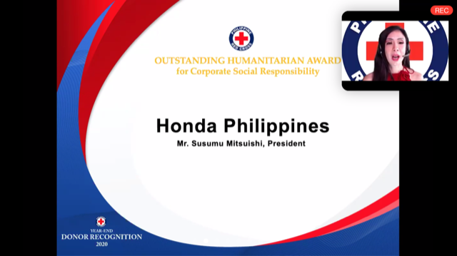 The Philippine Red Cross (PRC) recently awarded Honda Foundation, Inc. (HFI) the Outstanding Humanitarian Award for Corporate Social Responsibilities (CSR). The recognition was for the initiative and support for the organization’s efforts in in helping communities in times of calamities and amid the pandemic.
