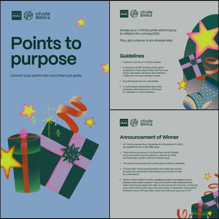 Join the “Infinite Smiles” Holiday 2023 campaign at any Power Mac Center and The Loop stores nationwide or online at powermaccenter.com, Lazada, Shopee, SM Malls Online, and the Viber Store. To be updated on news and promotions, follow Power Mac Center on Facebook, Instagram, X (Twitter), TikTok, Viber, and YouTube.