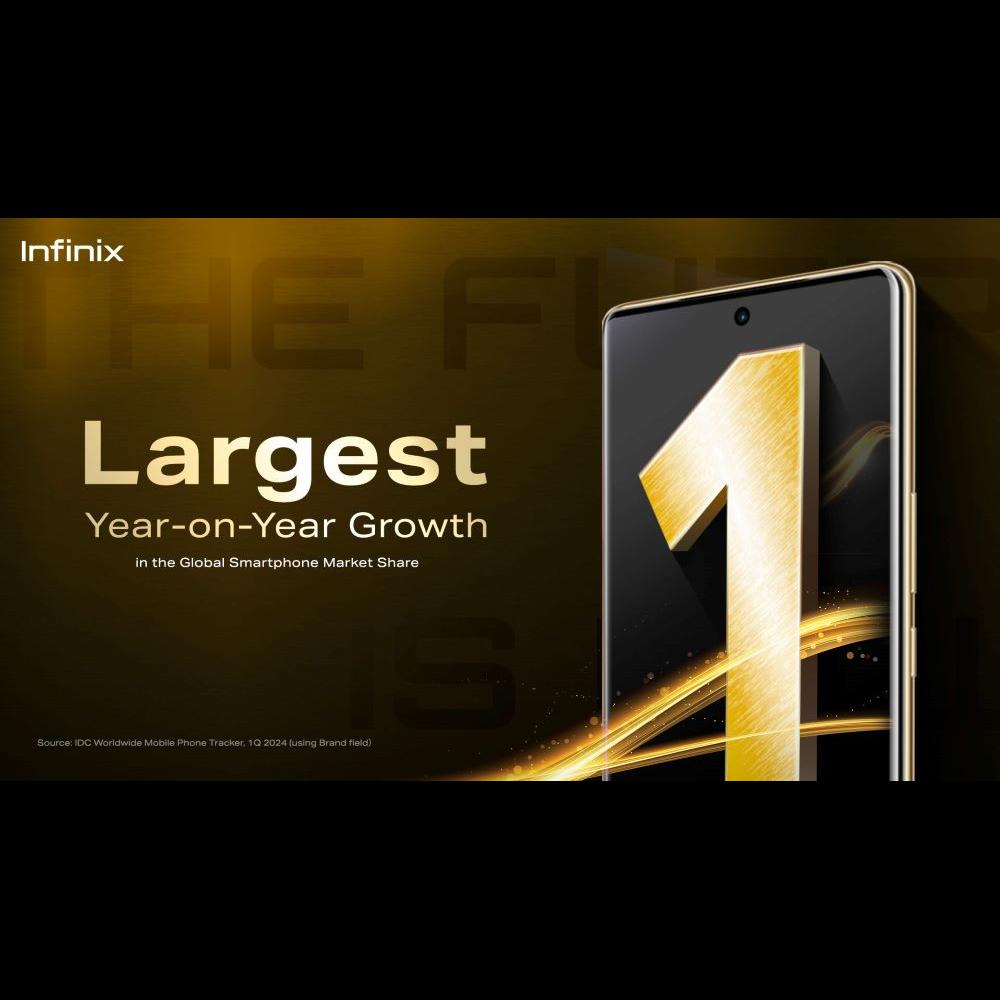 Infinix, a trendy tech brand crafted for young consumers, reports exceptional growth in Q1 2024. According to IDC's Worldwide Quarterly Mobile Phone Tracker, Infinix achieved the highest year-on-year global market share growth amongst all major smartphone brands worldwide. Infinix's year-on-year market share growth increased from 1.7% to 3.7% in Q1 2024, and its global smartphone shipments surged by a remarkable 150.6% year-on-year, achieving four consecutive quarters of rapid and sustained growth.
