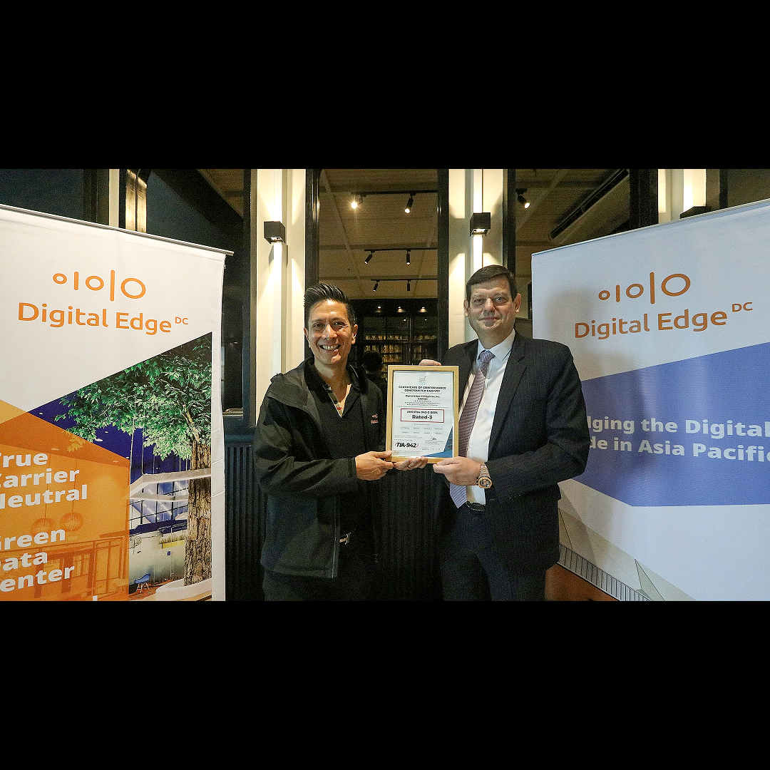 Against this backdrop, Digital Edge was today awarded ANSI/TIA-942 certification, recognized as an industry gold standard in terms of data center resiliency. To achieve certification, a data center must meet minimum standards covering all aspects of the physical infrastructure within the facility, including but not limited to, site location, electrical, mechanical, telecommunications, fire safety, and security. The certification was awarded to Digital Edge by EPI Certification Pte Ltd (EPI), the leading ISO-17021 accredited TIA-942 Certification Body.