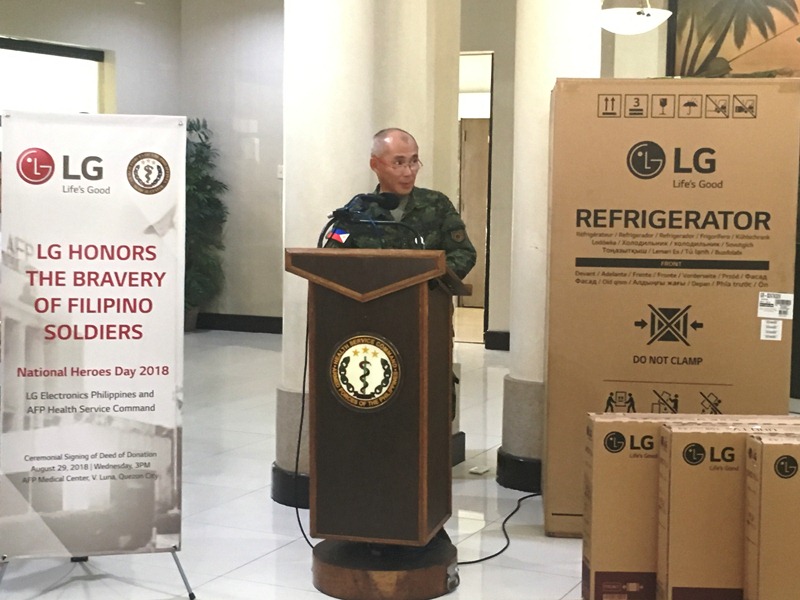 BGen Augustus H De Villa, Acting Commander AFP Health Service Command (AFPHSC) expressed his fervent gratitude to LG Electronics. “I, together with the staff of the AFP Health Service Command, would like to extend our heartfelt appreciation to LG Philippines. This deed of donation signing is a concrete realization that our soldiers’ efforts are greatly recognized by the people they are serving. May you continue supporting our troops as they protect and secure the sovereignty of our nation.”