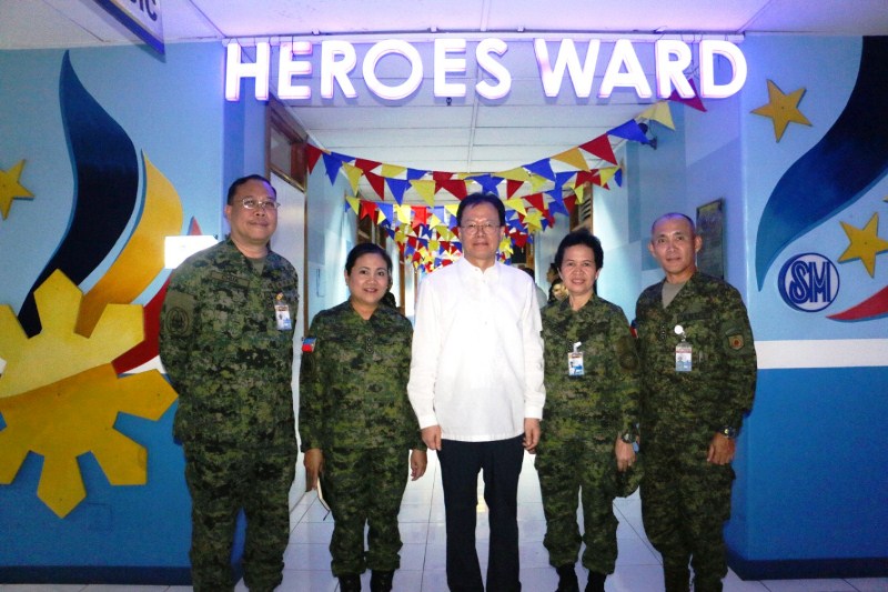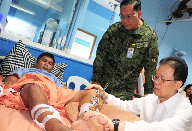 MAIN PHOTO: LG Philippines managing director Inkwun Heo visit Corporal Roy Aquino PA who suffered injuries in the Marawi siege. Looking on is LTC Domingo A Chua Jr (MC) PA, Head Dept of Orthopaedic Surgery and Traumatology at the V Luna Medical Center.