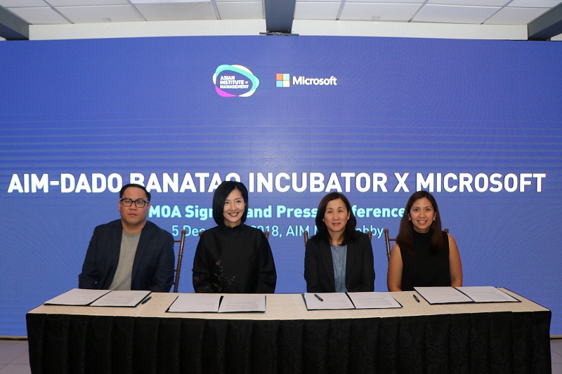 Grounded on its advocacy of helping develop startups worldwide, Microsoft Philippines announced its partnership with the Asian Institute of Management - Dado Banatao Incubator (AIM-DBI/The Incubator), which aims to strengthen The Incubator’s program by equipping Philippine startups with innovative solutions mainly powered by Microsoft’s cloud-based technology, Azure, through rhipe Philippines, Inc., its cloud indirect provider.