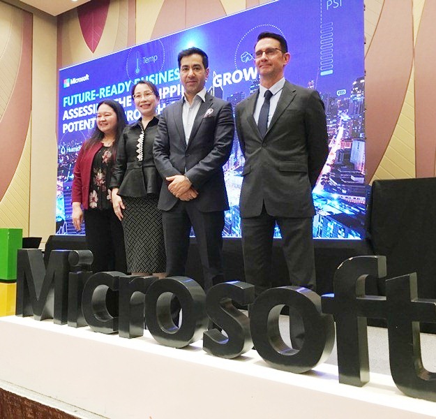 MAIN PHOTO (from left): Microsoft Philippines Solutions Specialist for Data & AI Solutions Jek Hermida, Rizal Commercial Banking Corporation (RCBC) FSVP and Head of Digital Banking Group Margarita Lopez, Microsoft APAC General Manager of Enterprise & Partner Group Ricky Kapur, and IDC Philippines Head of Operations Randy Roberts.