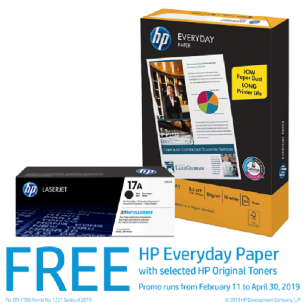 So, what are you waiting for? Buy any of the participating HP Original Toners at authorized HP resellers nationwide to get your free 500 sheets of letter-size HP Everyday Paper! Promo period is until April 30, 2019 only. See posters and print ads for more details. Per DTI-FTEB permit no. 1221, series of 2019.