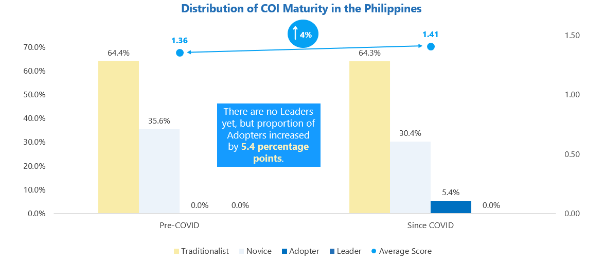 The study found that in the span of six months, organizations in the Philippines have matured in a culture of innovation by 4%, an indication that they have increased their ability to innovate. In comparison, organizations in Asia Pacific saw an 11% growth in culture of innovation maturity.