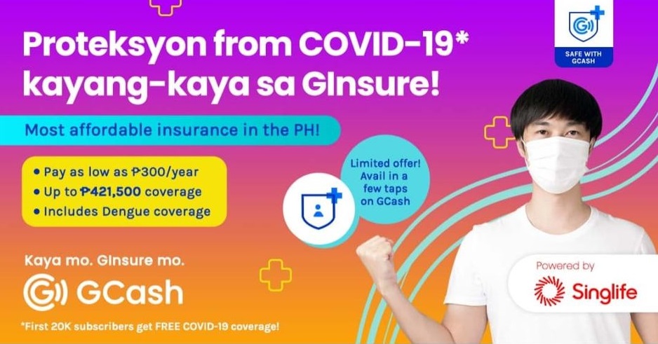 A first in the Philippines, GInsure is GCash’s built-in insurance marketplace powered by Singlife Philippines, a mobile-first life insurer. The coverage comes with a multi-level benefit that cushions the blow of related medical costs amounting to P140,500. This includes a P500 allowance for positive test results, P40,000 allowance for confinement, and up to P100,000 medical cost reimbursement for more severe cases of COVID-19 and dengue.
