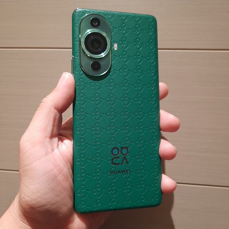 The most outstanding physical feature of the HUAWEI nova 11 Pro is its nova monogram vegan leather design on the back, which HUAWEI claims as the industry's first debossing process for vegan leather. Apart from the green color (the phone is also available in black), the nova 11 Pro exclaims eco-friendliness and sustainability with its use of vegan or faux leather, which means that the company harmed no animal in manufacturing the material. Besides providing the nova 11 Pro with a unique look, vegan leather enhances grip and maneuverability when handling the smartphone.